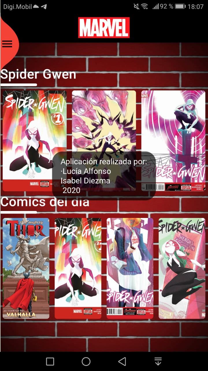 We are glad to present you an Android App about Marvel, the great comic book publisher, in which we can look for the character we like the most in the franchise and from there the application shows us the comics in which it has appeared during all these years, as well as some extra functionalities, such as a user profile page and a comic book reader (just a few examples).